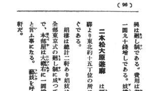 福島一本杉遊廓(一本柳の遊郭)全国遊廓案内の福島県の項目の続きです。全国遊廓案内現在の福島市内には、遊廓と呼ばれるところが複数あった模様です。 その中でも一番最初に出てくるのがここです。福島市一本杉遊廓 は福島県福島市一本杉新地に在って、東...