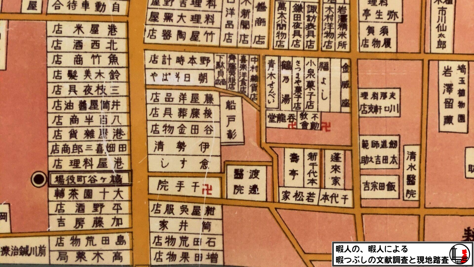 【埼玉県】鳩ヶ谷町(乙種料理店)を同定してみるで手持ちの情報で大体の場所を特定していたつもりだったのですが、いい加減にちゃんと調べてみようかなぁと思い立って作業してみました。