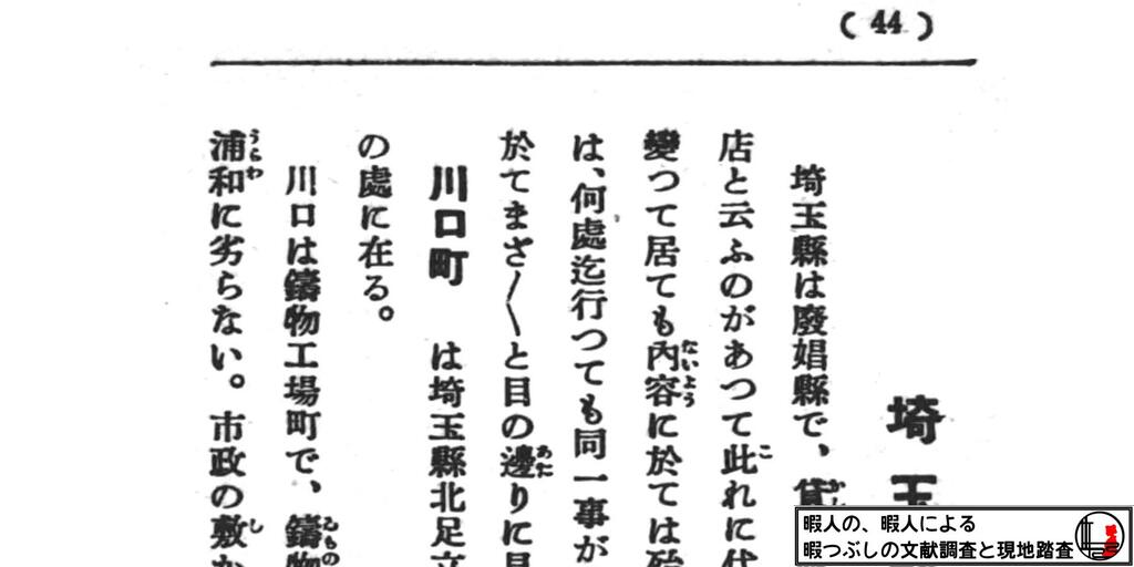 この記事は、【埼玉県】川口町(乙種料理店)を同定してみるの追加調査です。