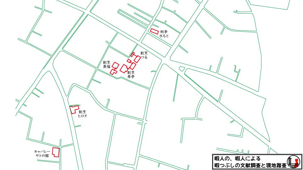 である。移行後の料亭街は現在手に入れている地図で判別がつくが、特飲街については、さらに追加の調査をしないとわからないですね。