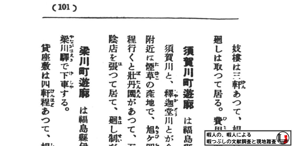 須賀川町遊廓 は福島県須賀川(すかがわ)町に在つて、東北本線須賀川駅で下車する。